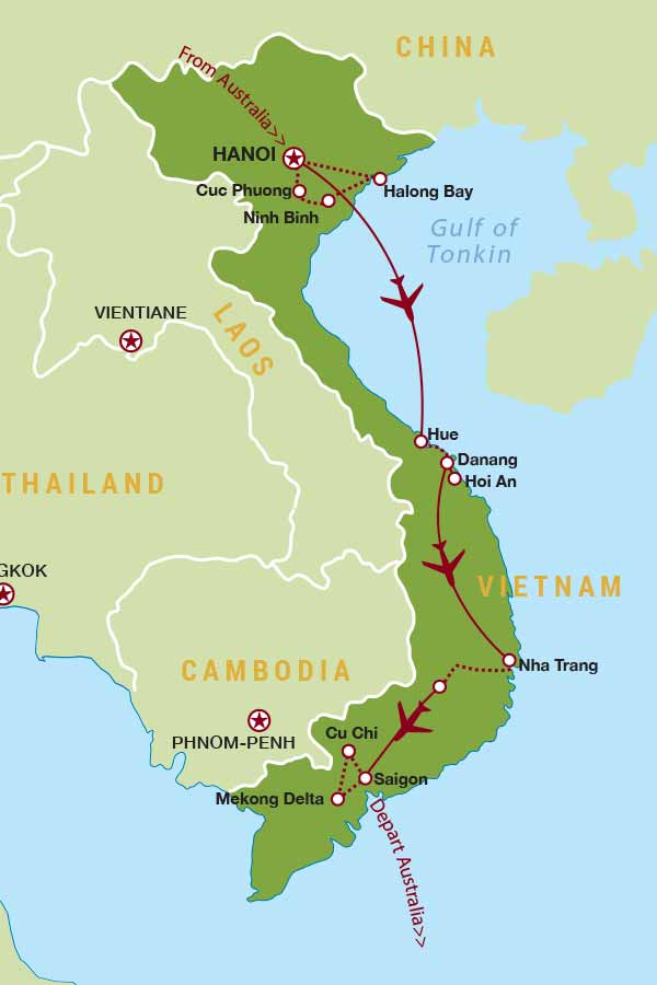 Hanoi • Halong Bay • Ninh Binh • Cuc Phuong National Park • Hue • Hoi An • Nha Trang • Dalat • Saigon • Mekong Delta